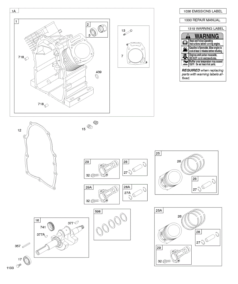 Parts for Briggs & Stratton 386447-0162-G1: Cylinder, Piston / Rings / Rods, Crankshaft Parts