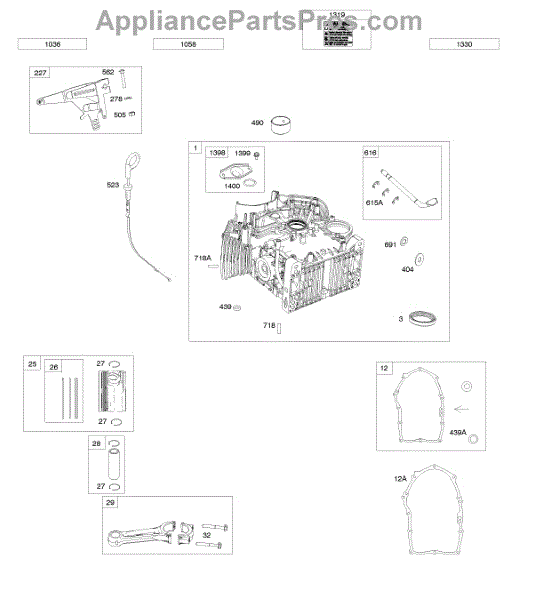 Parts for Briggs & Stratton 541777-0110-E1: Cylinder, Pistons / Rings / Connecting Rods Parts