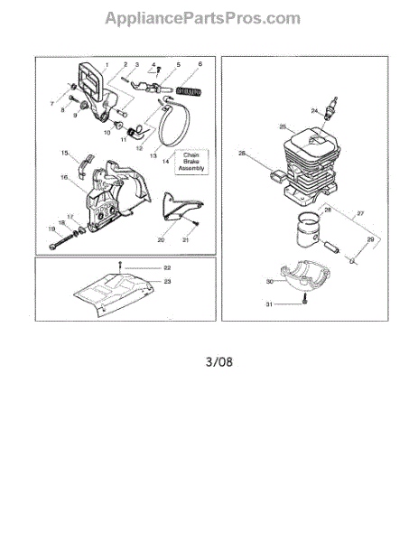This genuine Husqvarna chain brake assembly can be used as a replacement part for chainsaws. The chain brake assembly contains the brake band as well as the spring and the plastic housing for it that affixes the part to the clutch drum. When activated, the brake band tightens around the clutch drum in order to stop the chain from rotating. A chain brake assembly might have to be ordered as a complete replacement if the brake band and its housing both suffer damage that prevents both parts from functioning as usual. If the brake band is activated while the engine continues to run, this could cause the appliance to overheat, thereby damaging all components associated with the chain brake assembly. If this occurs, the brake band, the spring, and the housing should be replaced with this OEM replacement part. Remember to always wear gloves when handling, repairing, and operating outdoor equipment. This is an OEM part sourced directly from the manufacturer. It is sold individually. This chain brake assembly is compatible with the following chainsaw brands: Husqvarna and Craftsman.