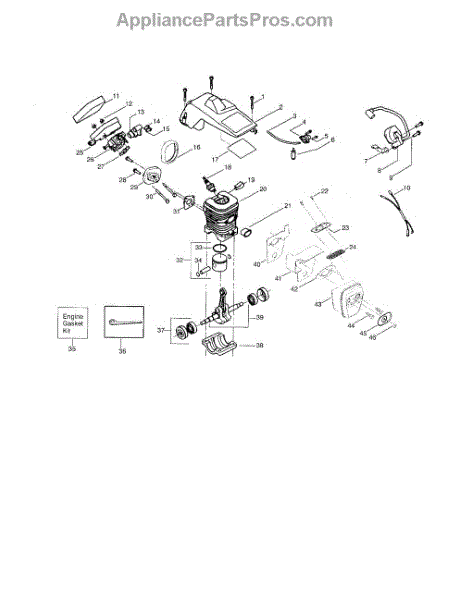 Complete engine gasket kit for chainsaws. Provides tight seals between connected parts to improve performance and prevent carburetor leaks. Confirm fit by model.