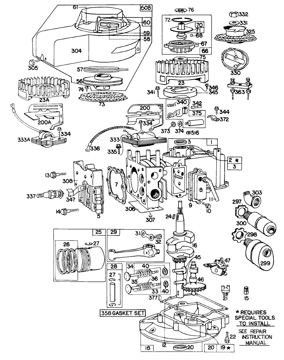 Parts for Briggs & Stratton 061502-9415-72: Cylinder,Sump Base,Pistongrp Parts