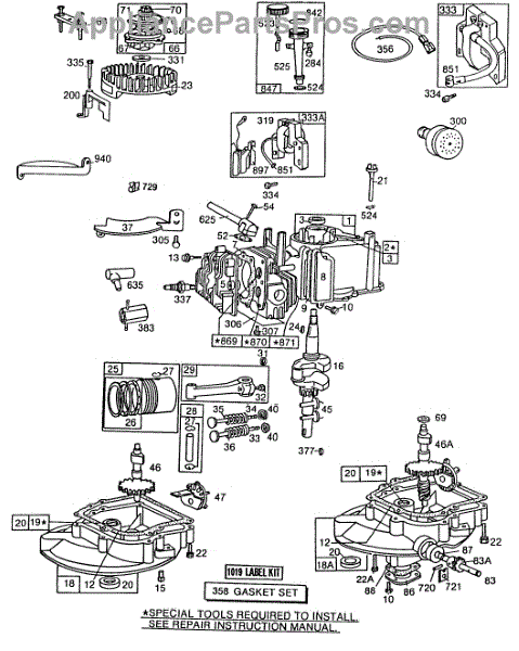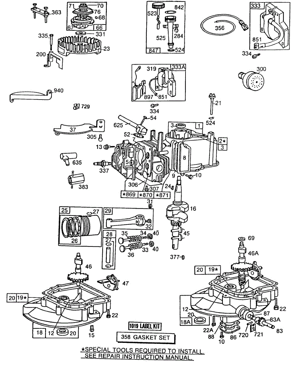 Parts for Briggs & Stratton 112982-3913-01: Cylinder,Sump Bases,Oil Fill Parts