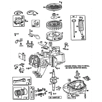 Parts for Briggs & Stratton 100708-3120-01: Cylinder,Sump,Piston,Oil Fill Parts
