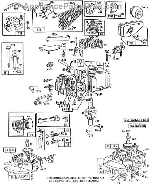 Parts for Briggs & Stratton 096502-3190-01: Cylinder,Sumps,Mufflers,Misc Parts