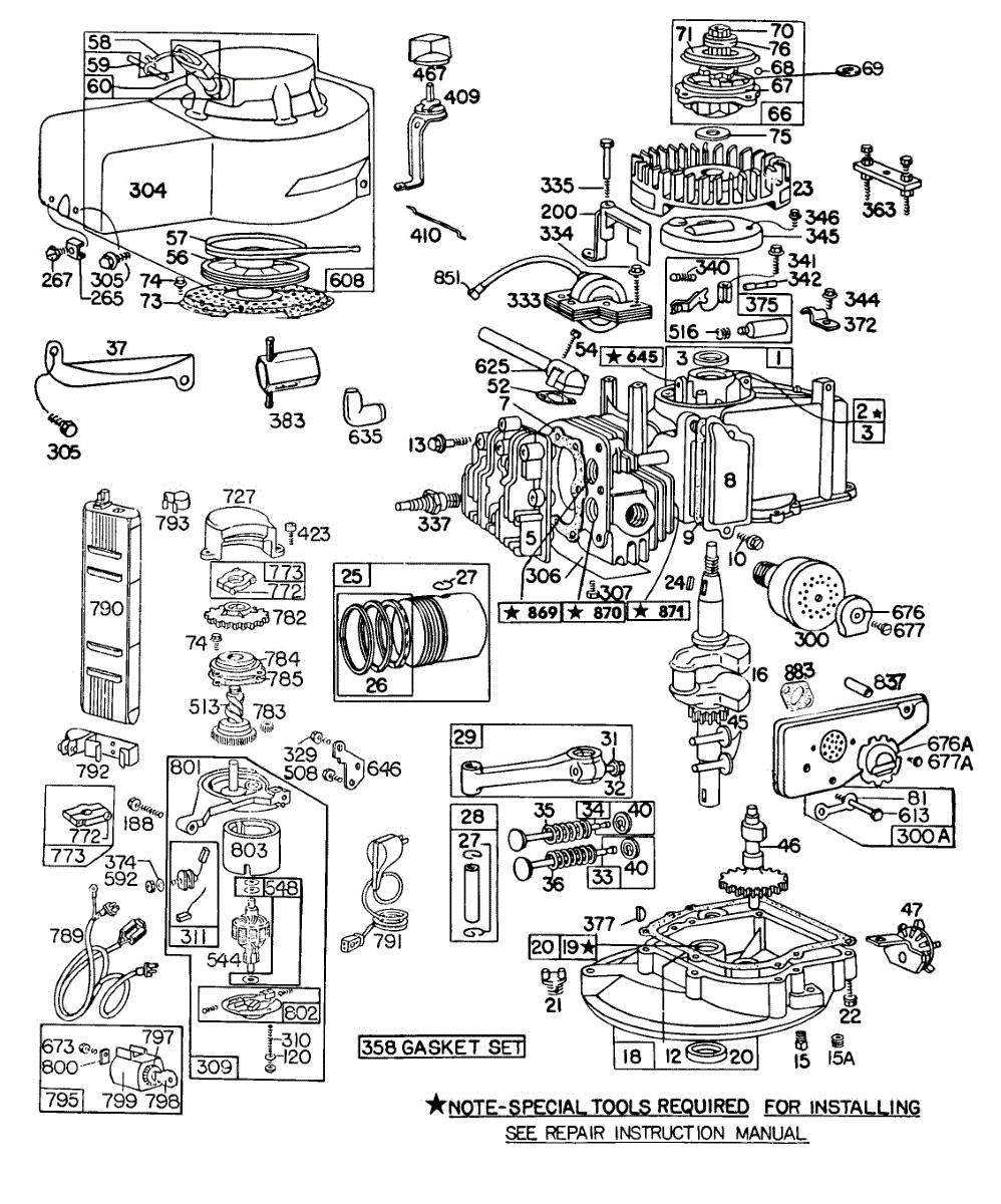 Parts for Briggs & Stratton 093508-0266-99: Cylinder,Sumps,Piston,Mufflers Parts