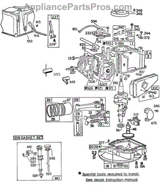 Parts for Briggs & Stratton 094508-0117-99: Cylinder,Sumps,Piston,Mufflers Parts
