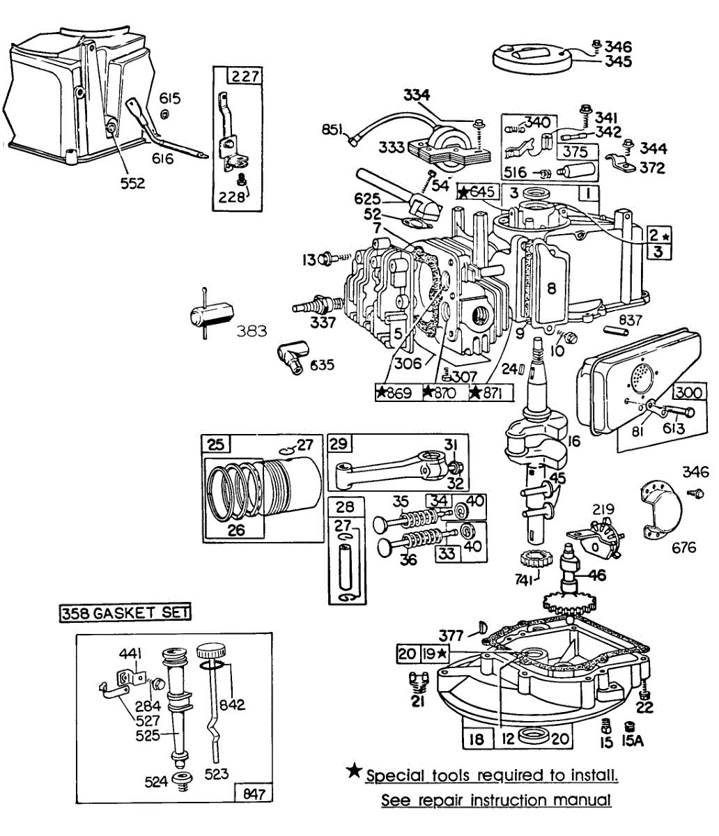 Parts for Briggs & Stratton 094508-0151-99: Cylinder,Sumps,Piston,Mufflers Parts
