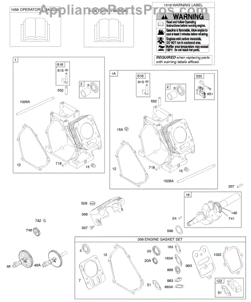 Parts for Briggs & Stratton 110492-0199-E1: Cylinders, Crankshaft, Engine Gasket Set Parts
