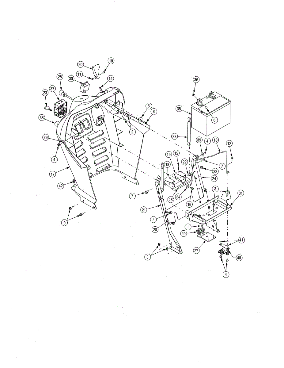 Hex screw fastener for securing lawn mower components. Replace if stripped, rusted, or missing to ensure proper assembly and equipment stability.