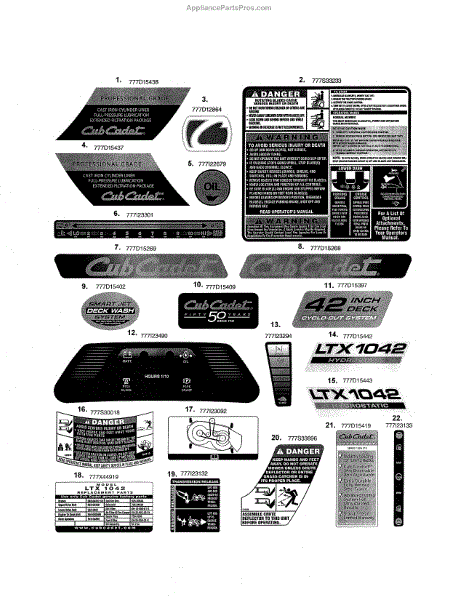 Parts for Cub Cadet 13WX91AT056: Ltx1042 Decals Parts