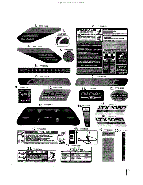 Parts for Cub Cadet 13WF91AP056: Ltx1050 Decals Parts