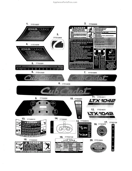 Parts for Cub Cadet 13RX91AT056: Decals-Ltx1042 Parts