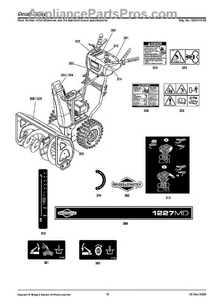 Parts for Briggs & Stratton 1696619-00: Decals Parts