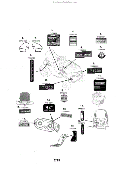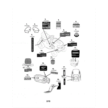 Decal label for riding mowers and lawn tractors. Installs on exterior panels. Replace if faded, peeling, damaged, or missing for restored appearance.