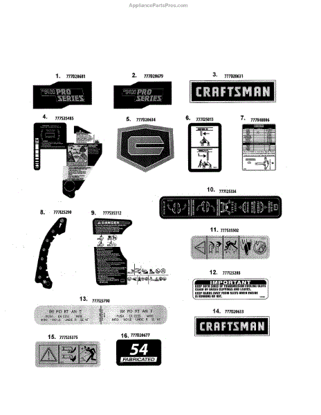Parts for Craftsman 247204221: Decals Parts