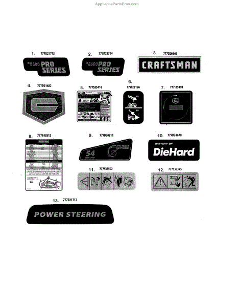 Parts for Craftsman 247204470: Decals Parts