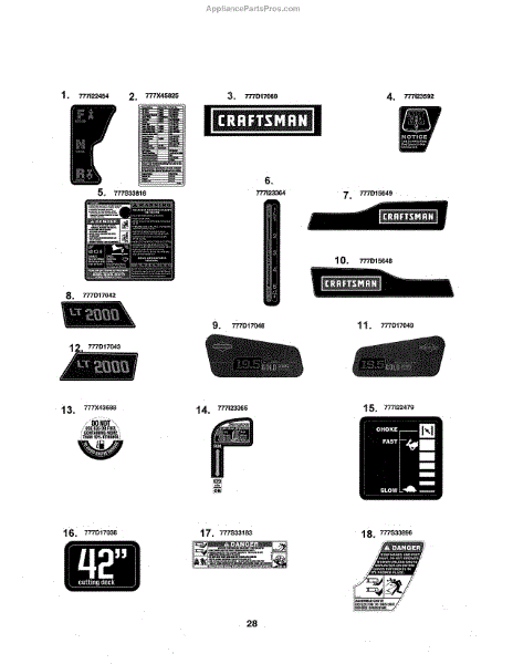 Parts for Craftsman 247288842: Decals Parts