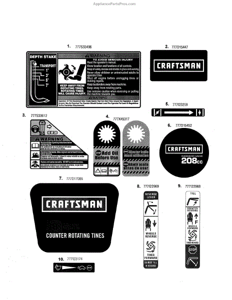 Parts for Craftsman 24729930: Decals Parts