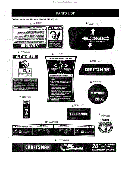 Parts for Craftsman 247886911: Decals Parts
