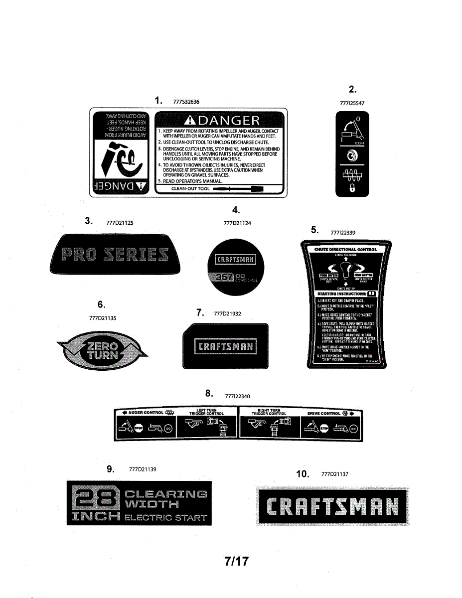 Control label for snowblower auger, drive, and steering mechanisms. Replaces faded, peeling, or missing instruction labels on control panel.