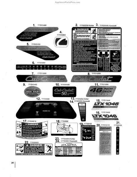 Parts for Cub Cadet 13WG91AT056: Decals-Ltx1046 / Kw Parts