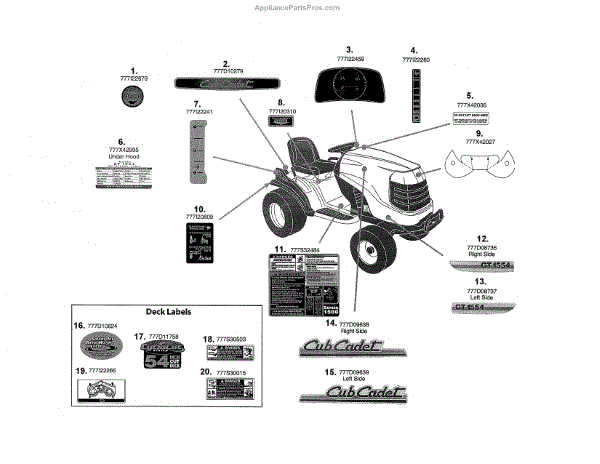 Parts for Cub Cadet 14AK13BK056: Decals Parts