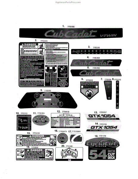 Parts for Cub Cadet 14AK94AK010: Decals Parts