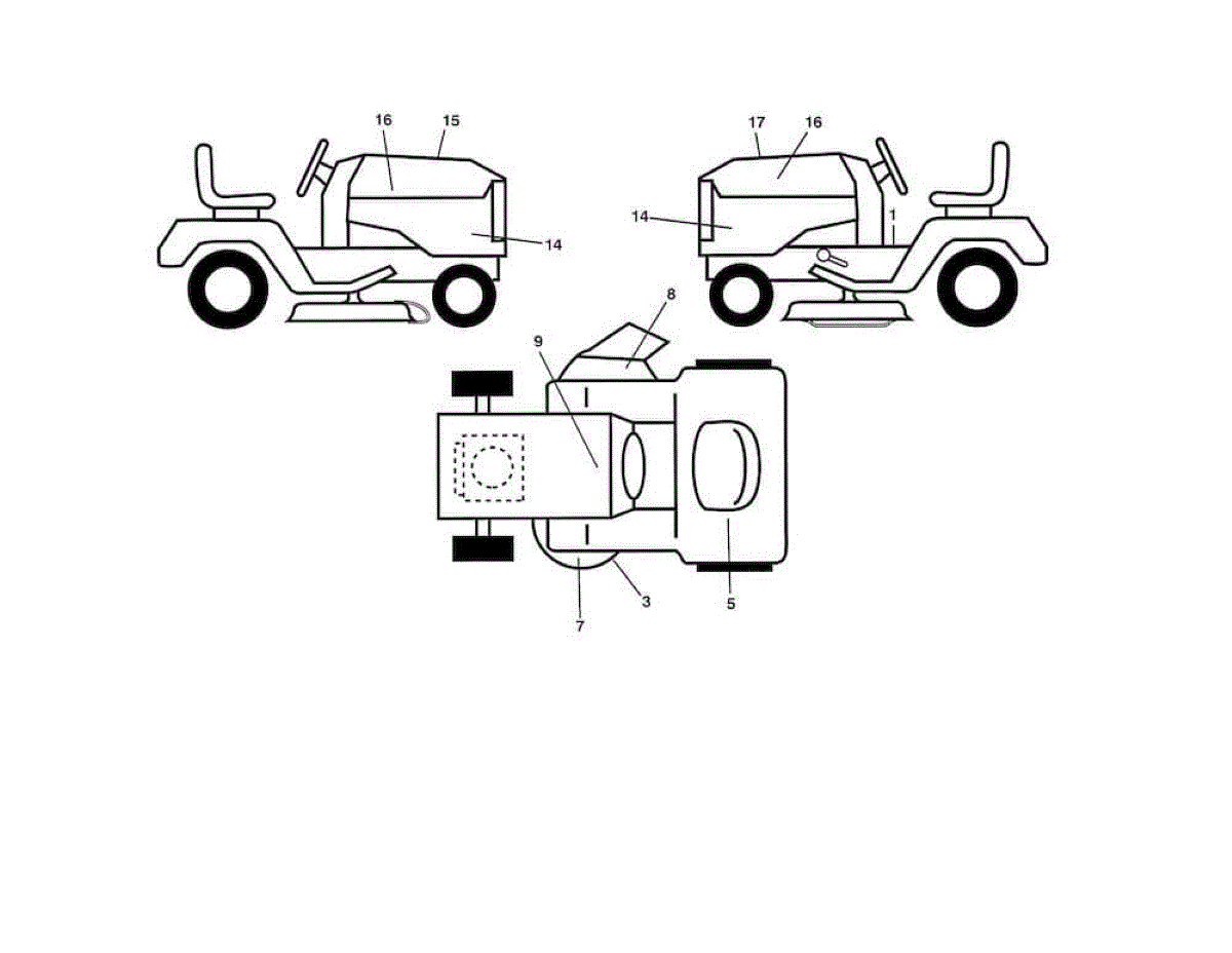 Mower deck decal for 48-inch and 54-inch premium riding mower decks. Replace worn, faded, or missing safety and identification decals on your tractor.