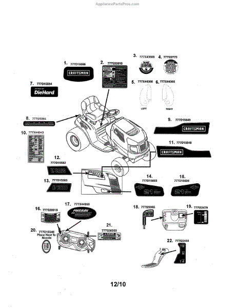 Parts for Kmart 02969460-1: Decals Parts