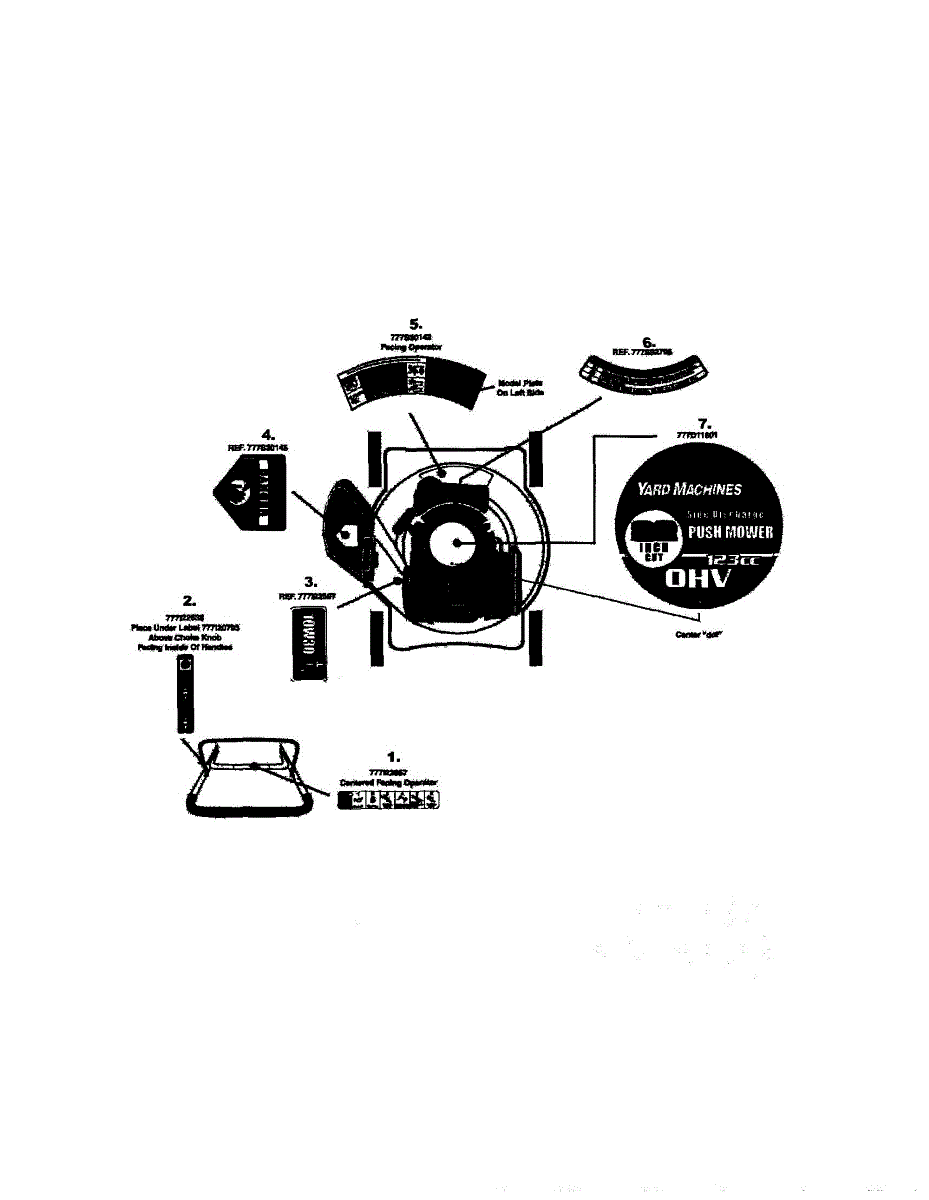 Replacement warning label for walk-behind lawn mowers. Installs on deck or handle to display safety information. Replace if faded, peeling, or missing.