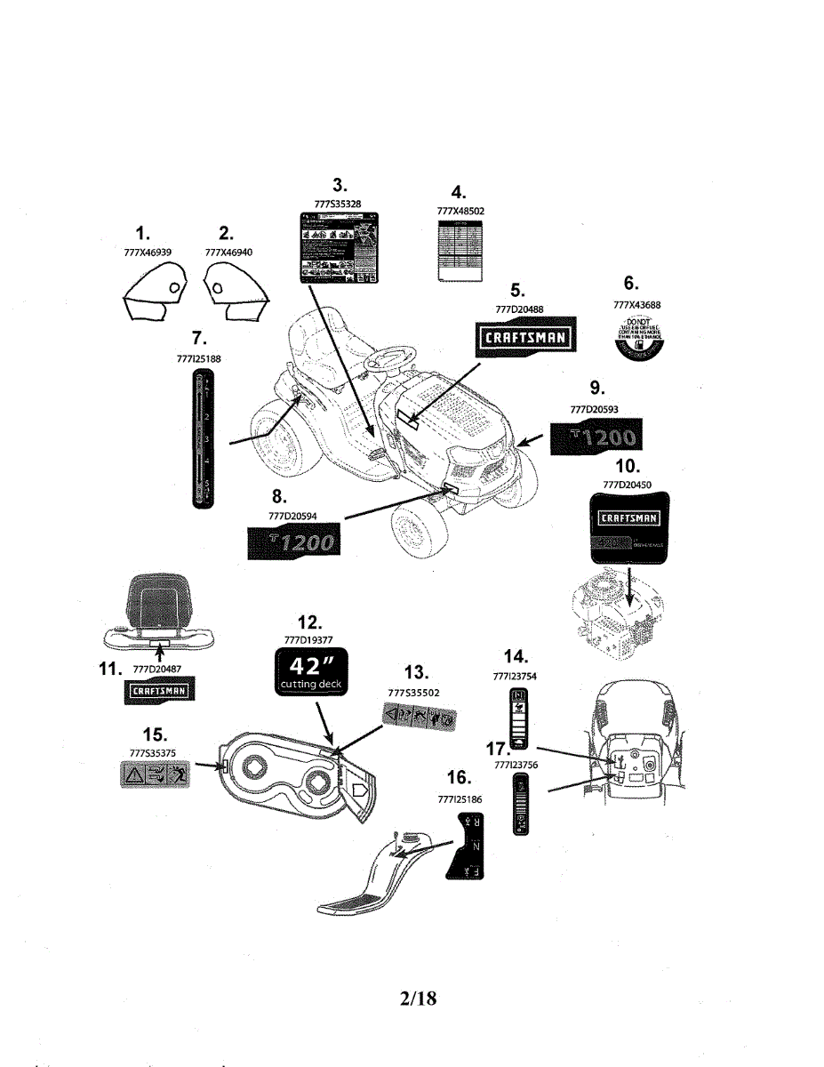 Rider information label for riding mowers and lawn tractors. Installs on mower body. Replaces worn, faded, peeling, or missing decals.