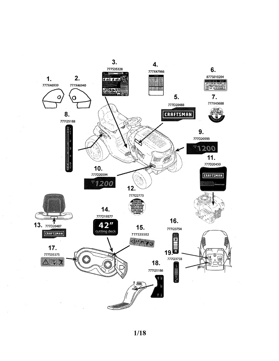 Decal label for riding mowers and lawn tractors. Installs on exterior panels. Replace if faded, peeling, damaged, or missing for restored appearance.