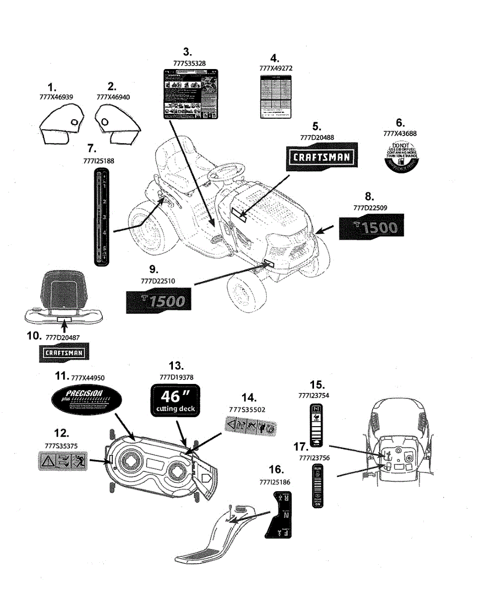 Decal label for riding mowers and lawn tractors. Installs on exterior panels. Replace if faded, peeling, damaged, or missing for restored appearance.