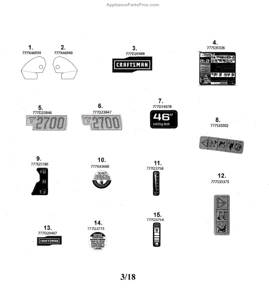 Decal label for riding mowers and lawn tractors. Installs on exterior panels. Replace if faded, peeling, damaged, or missing for restored appearance.