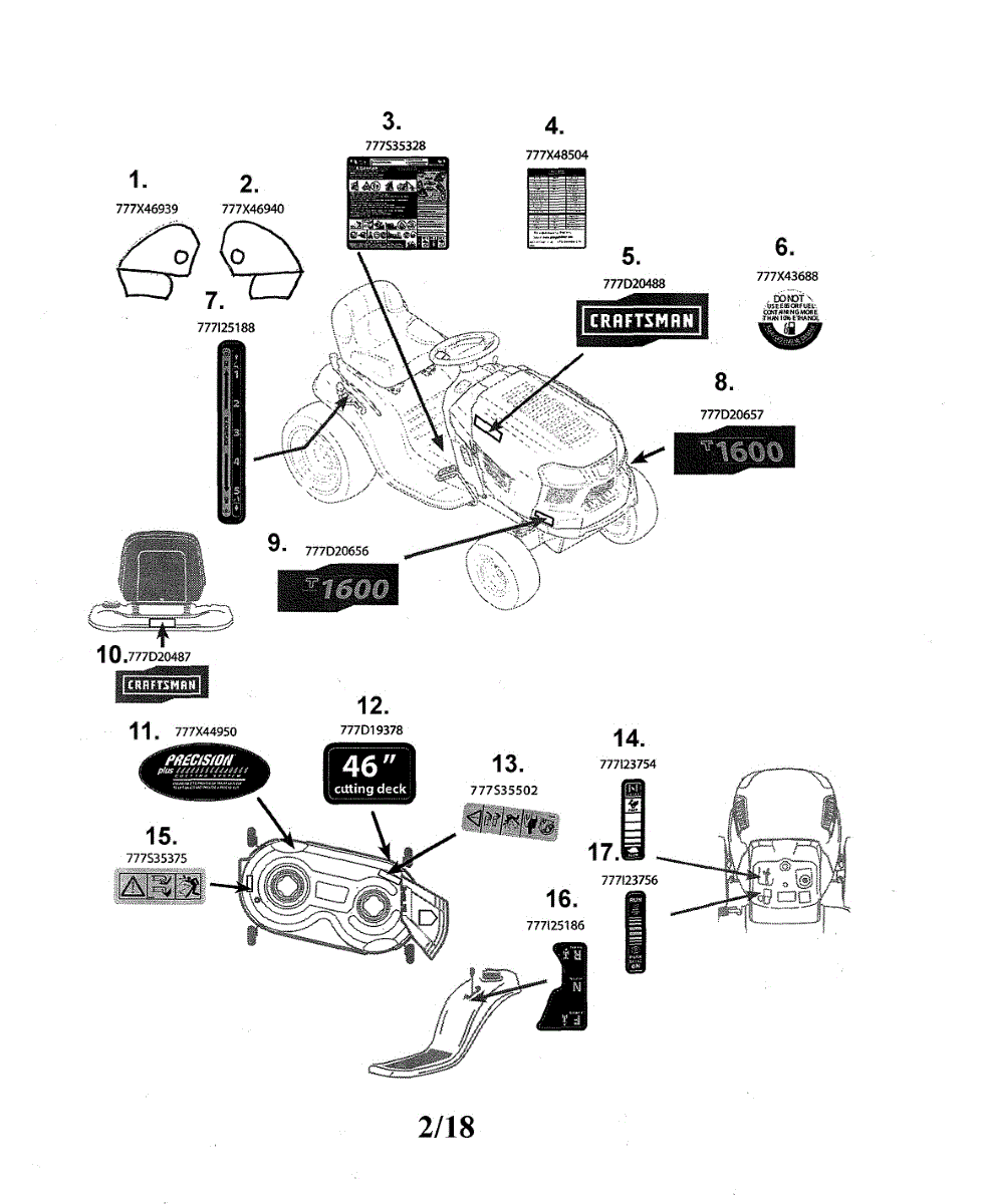 Decal label for riding mowers and lawn tractors. Installs on exterior panels. Replace if faded, peeling, damaged, or missing for restored appearance.