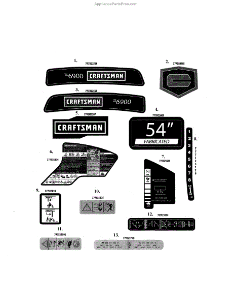 Parts for Mtd 17ARCACA099: Decals Parts