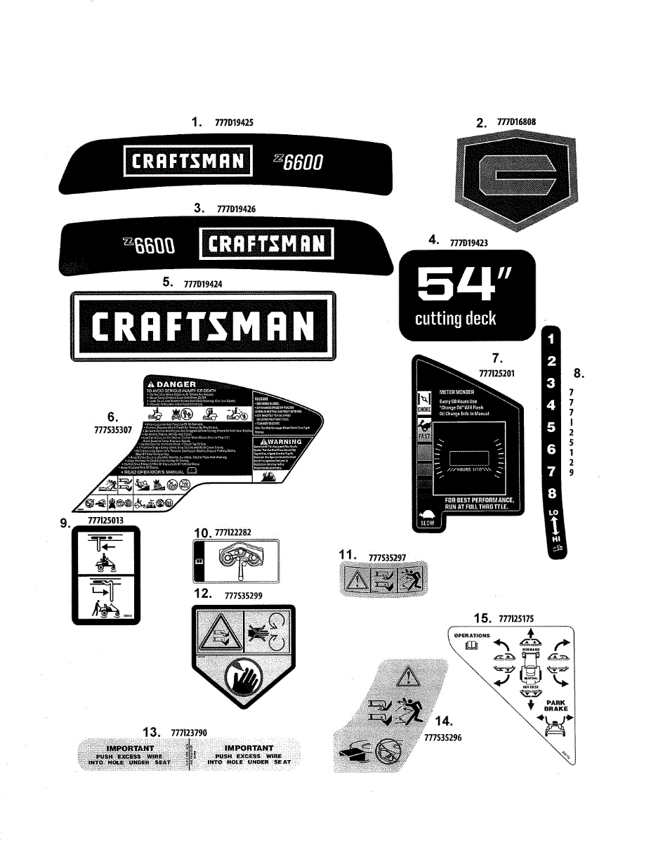 Parts for Mtd 17ARCACK099: Decals Parts