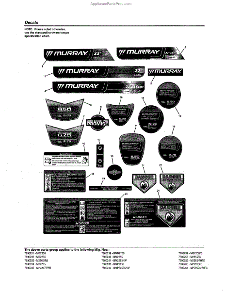 Parts for Murray 7800201: Decals Parts