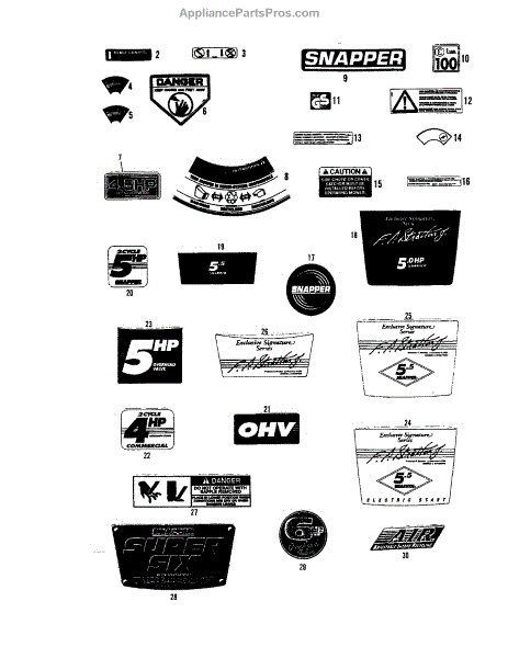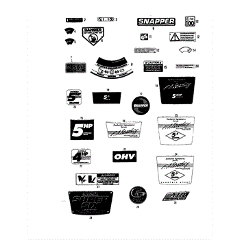 Parts for Snapper 21500T2: Decals Parts