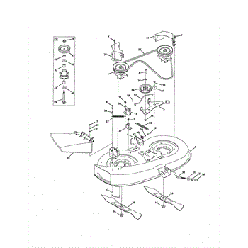 Replace your cracked or damaged 38-inch mower deck assembly. Installs beneath lawn tractor frame. Essential when original deck is rusted, bent, or worn.