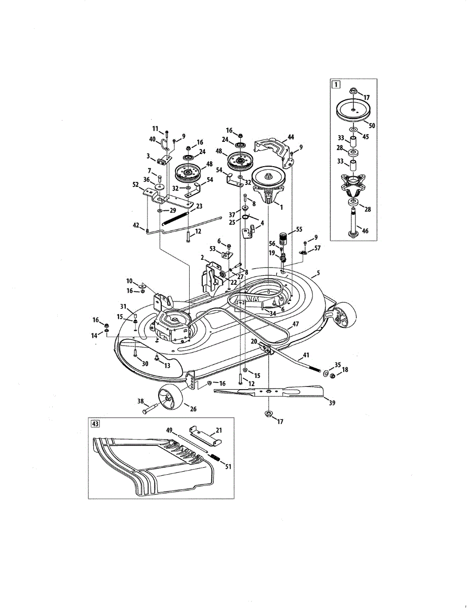 Deck brake assembly stops mower blades safely when disengaged. Fixes blades that won't stop spinning or take too long to halt. Moderate DIY repair.