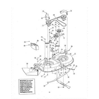 A V-belt is used on riding lawn mowers and yard tractors to turn the blades and the accessories of these power tools. The engine pulley, which supplies power, is connected to the cutting deck pulley, which turns the mower blades, with a V-belt. Over time the V-belt, which is made of rubber, may stretch, calling for the tension on the belt to be adjusted. Eventually the belt will wear to the point that it no longer turns the cutting deck pulley fast enough for the blades to cut grass. Sometimes the belt will crack with dry rot and break. In any of these instances, the solution is to replace the V-belt. In order to replace the V-belt, the cutting deck must be lowered completely. A worn belt will likely slip off the cutting pulley with little resistance. In case the belt is missing, the user will find a diagram with the proper V-belt routing on top of the cutting deck. When replacing the V-belt, make sure to use a genuine OEM replacement part such as this one, which is manufactured to be an exact replacement for the original. This V-belt is compatible with riding mowers from MTD, Murray, Huskee, Troy-Bilt, Yard Machines, and Yard Man.