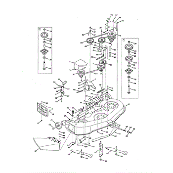 Replacement spindle assembly for lawn tractor mowing decks. Replaces broken, worn, or defective spindle housings. Mounts to deck to support blade rotation.