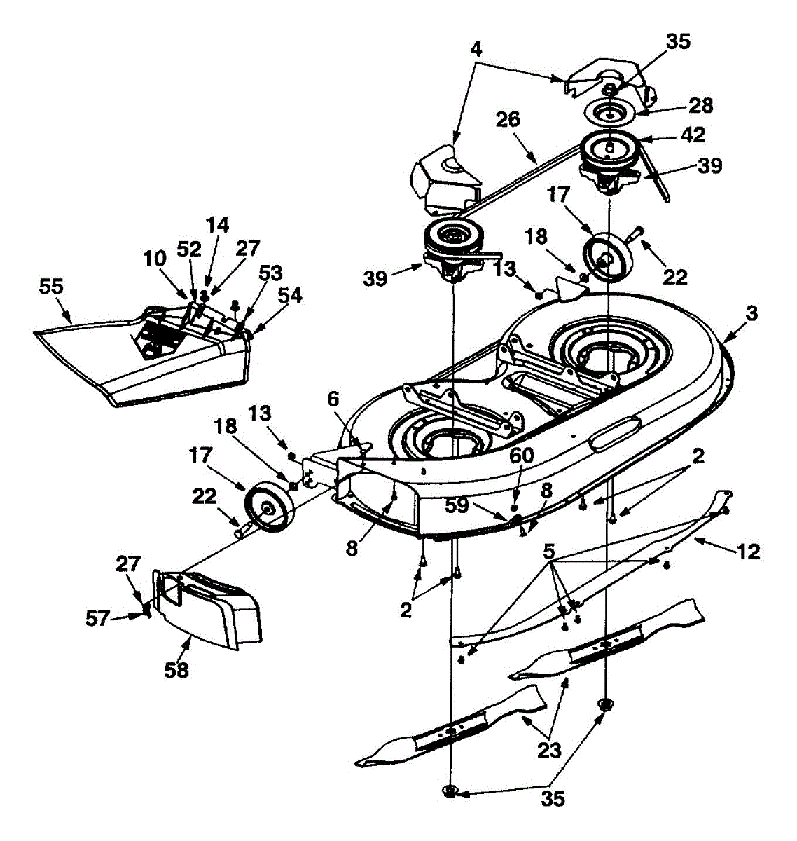 Replace your cracked or damaged 42-inch mower deck assembly. Complete deck kit for lawn tractors. Ideal when the original deck is bent, rusted, or beyond repair.