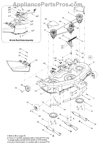This replacement part is a deck pulley. In a mower, it provides tension for and guides a belt which allows the mower's blades to spin.If the mower's blades are not spinning, if the deck is vibrating excessively, or if cuts are uneven, the deck pulley may be at fault. Aside from damage from impact, the pulley can become worn down over time with extended use.This is a genuine OEM replacement part manufactured by MTD. This part is sold individually.