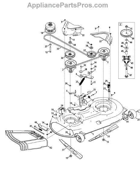 The Lawn Mower Spindle Assembly is an OEM part for MTD lawn mowers Located in the mower's lower deck, the spindle assembly connects the blade to the drive belt. This enables the mower to cut grass effectively. This assembly is comprised of an adapter and a spindle. It gets activated as a pulley spins the drive belt. While designed to withstand minor impacts, larger or harder objects may cause damage. Damage can lead to blade misalignment or detachment.