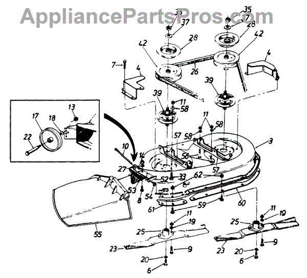 This pulley is a genuine MTD part, sold individually. This pulley can be used as a replacement part in a lawn mower or a wood chipper. The purpose of this pulley in a lawn mower or a wood chipper is to allow the spindle to rotate so that the blades of the lawn mower can rotate and facilitate the fine chopping of wood or mowing of greenery on a variety of surfaces when the appliance is in operation.The pulley in a lawn mower or a wood chipper might need to be replaced if the pulley can no longer regulate the rotation of the spindle assembly. This could occur if the pulley is dented, cracked, warped, eroded, or otherwise damaged to the point of reduced or no functionality; if this occurs, the pulley should be removed and replaced by this genuine OEM replacement part in accordance with the proper set of instructions sourced from a relevant appliance manual or handbook.This is a genuine OEM from the manufacturer. It is sold individually. This pulley is compatible with the following outdoor appliance brands: MTD, Craftsman, Cub Cadet, Murray, Yard Machines, Huskee, Montgomery Wards, Yard Man, Turf King, and MasterCut.