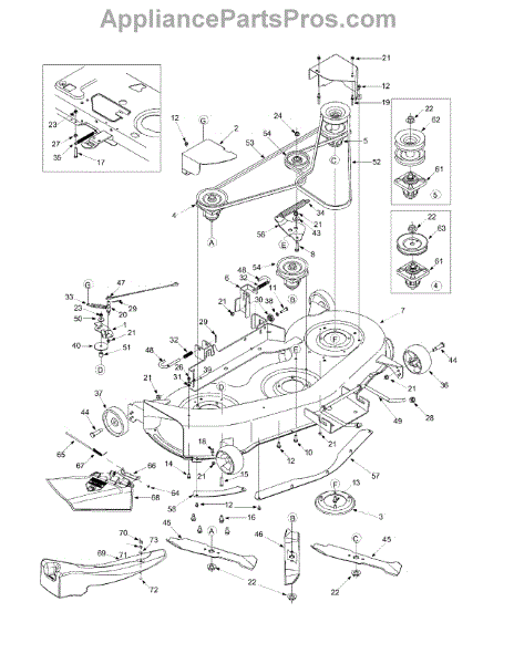 This replacement part is a deck pulley. In a mower, it provides tension for and guides a belt which allows the mower's blades to spin.If the mower's blades are not spinning, if the deck is vibrating excessively, or if cuts are uneven, the deck pulley may be at fault. Aside from damage from impact, the pulley can become worn down over time with extended use.This is a genuine OEM replacement part manufactured by MTD. This part is sold individually.