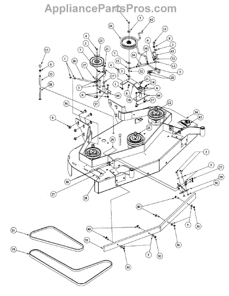 Deck drive belt powers your wide area mower's cutting deck rotation. Replace if you notice slipping, squealing, or uneven cutting. Verify fit with your model number before ordering.