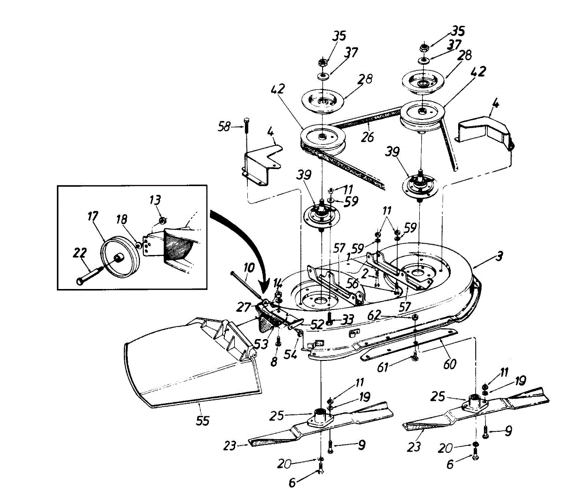 Blade adapter that mounts between the mower blade and spindle shaft. Replace if cracked, stripped, or worn to ensure secure blade attachment and safe operation.